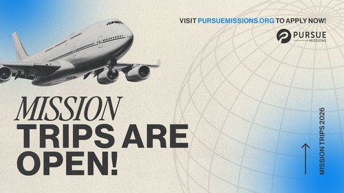 Join us as we serve the nations with Pursue Missions! Take a look at all the trips going out in 2026, pray for the Holy Spirit to guide you as you make a decision, and submit your application. We can't wait to serve the nations with you!